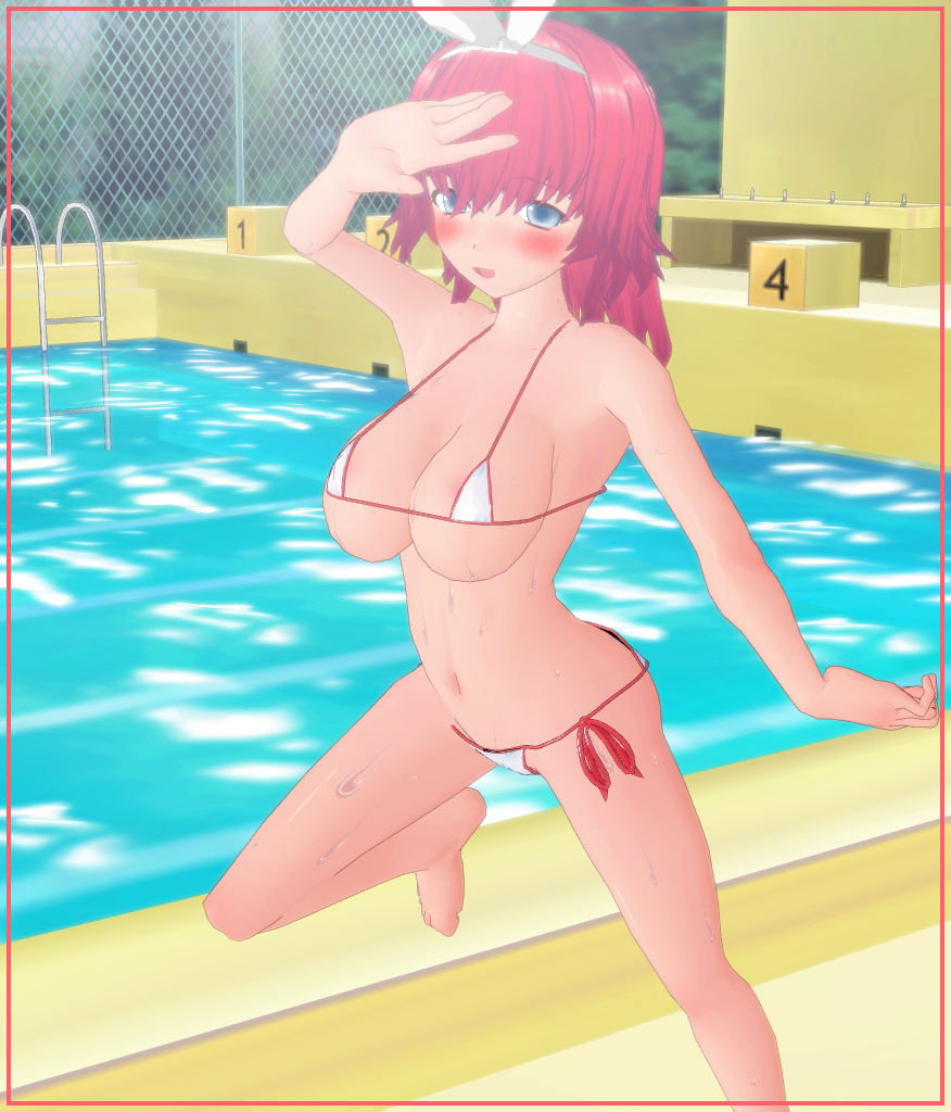 2021年8月11日■夏のリゾートで謎生物と記念撮影☆ 雪奈「偶にリゾートプールに出現するレアモンスターらしいよ?」